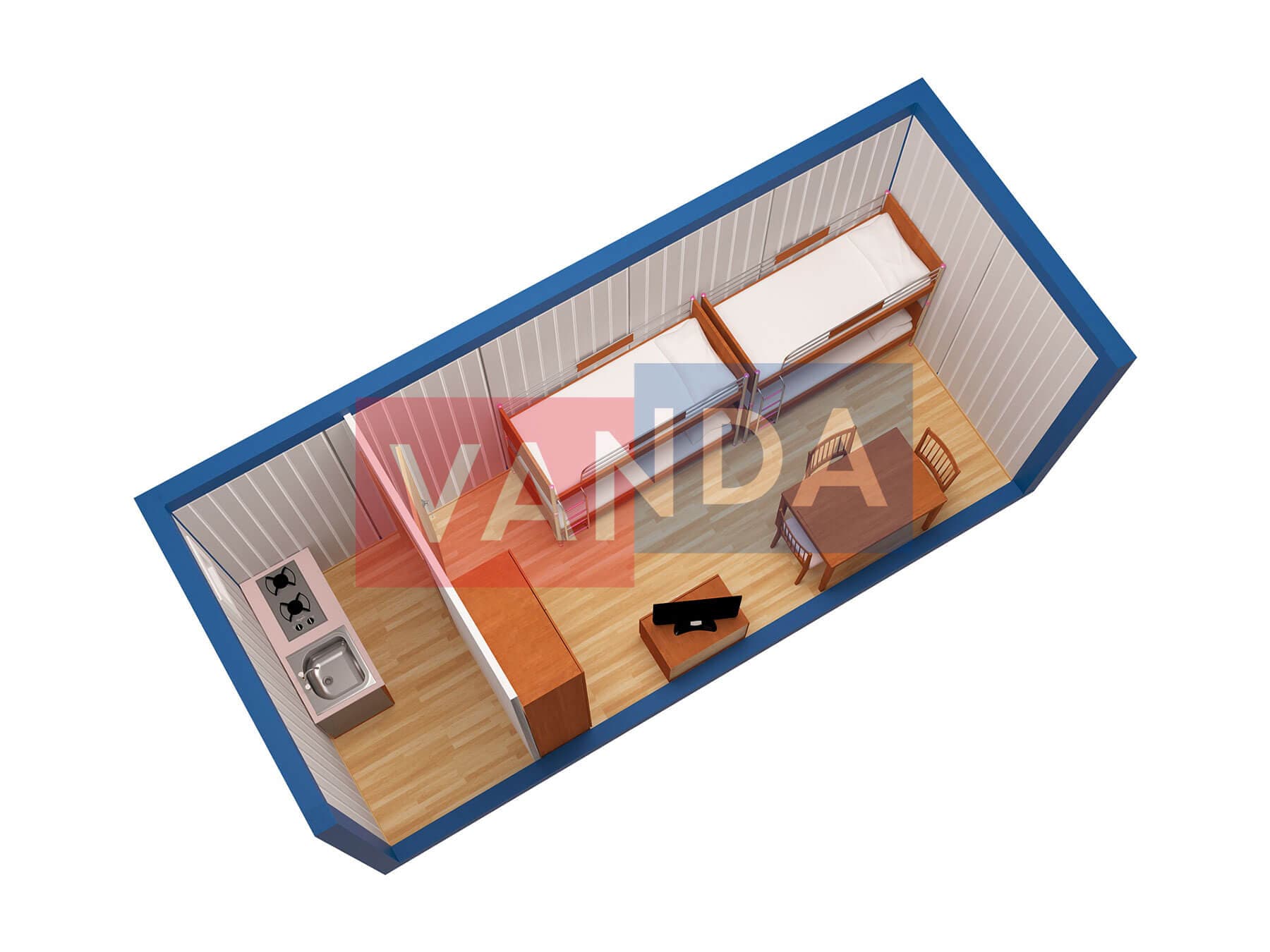 Металлическая бытовка с кухней в тамбуре 5,85 x 2,4 - Вагонка ПВХ
