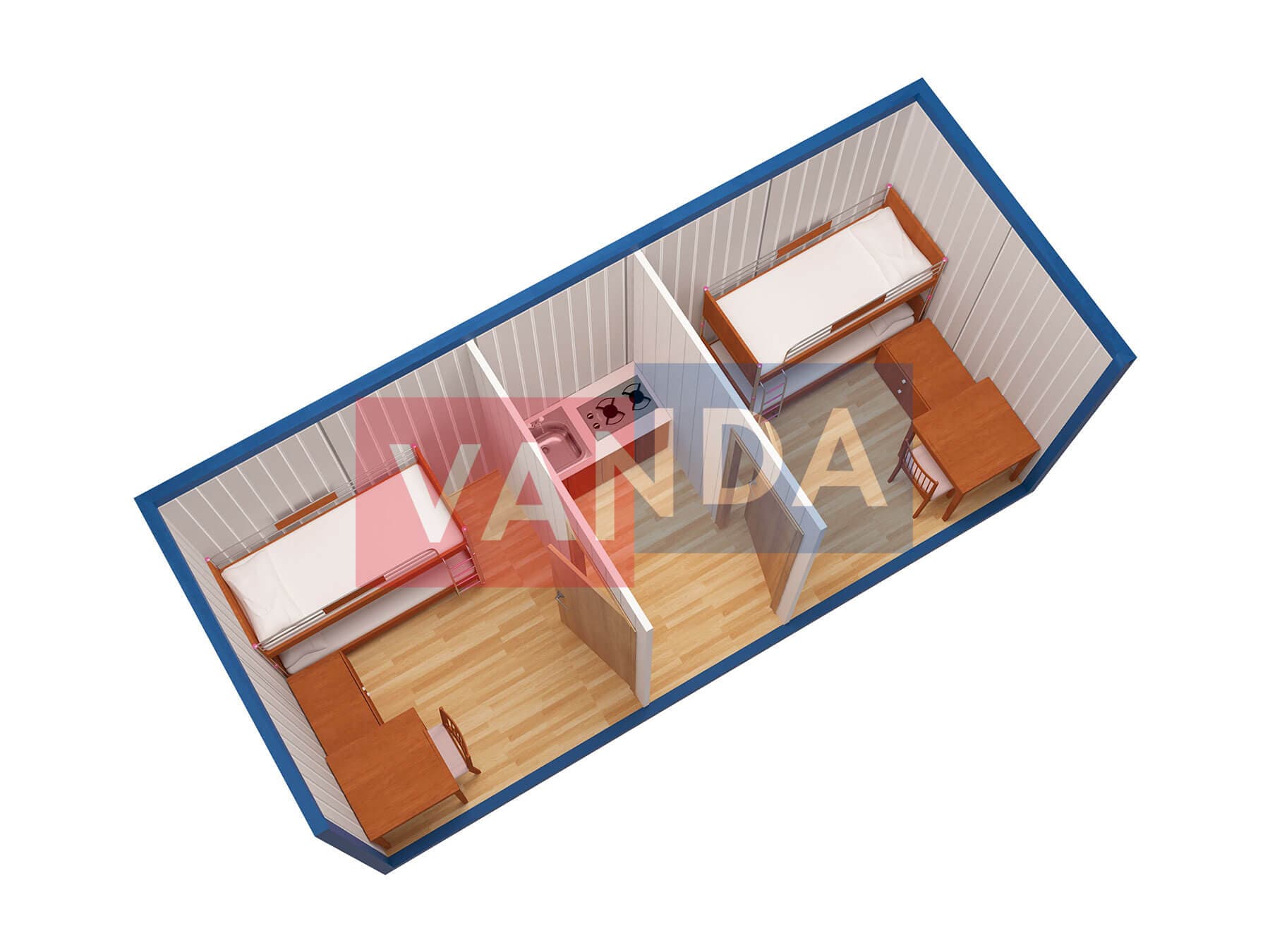 Металлическая бытовка с кухней в тамбуре 5,85 x 2,4 - Вагонка деревянная